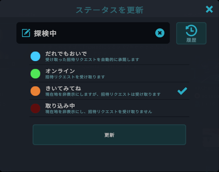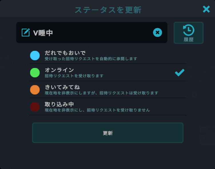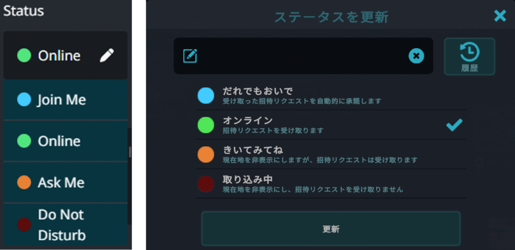 VRChatのステータスは、自分の現在の状態やプレイスタイルを、