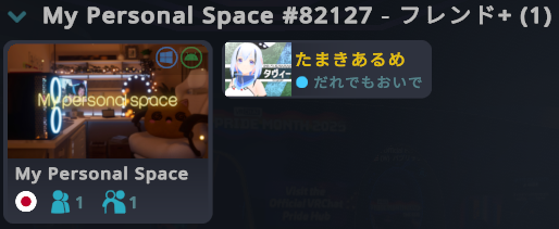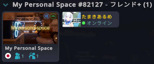 自分がフレンド+やパブリックなどの公開インスタンスにいる場合、
