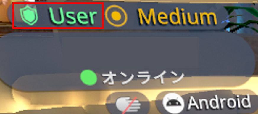 メニューを開いた状態で、アバター上部のネームプレートをチェックしてみましょう。