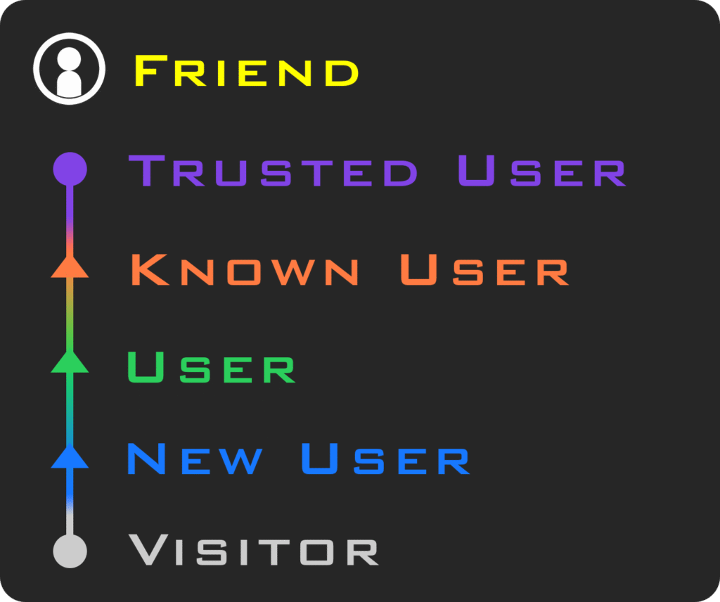 A user’s Trust feeds into something we’ve called a “Trust Rank”, which is an indicator of how much time a user has spent in VRChat, how much content they’ve contributed, the friends they’ve made, and many other factors.